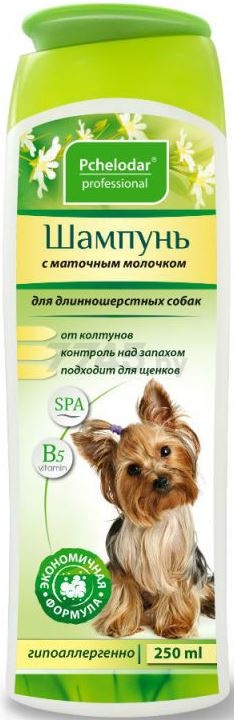 Шампунь с маточным молочком для длинношерстных собак / 250 мл (Пчелодар)