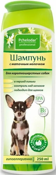 Шампунь с маточным молочком для короткошерстных собак / 250 мл. (Пчелодар)